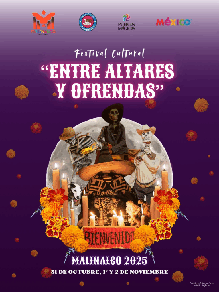 Entre montañas, callejones empedrados y un aire místico que parece detener el tiempo, el Pueblo Mágico de Malinalco se prepara para celebrar el Día de Muertos 2025 con uno de los eventos culturales más esperados del año: el Festival “Entre Altares y Ofrendas”, que se realizará del 31 de octubre al 2 de noviembre.