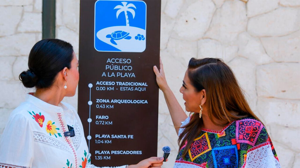 “A partir de ahora, toda persona podrá identificar fácilmente los accesos públicos con nueva señalética que dice: ‘Acceso público a la playa, completamente gratuito’. Son 20 señaléticas que se instalarán a lo largo del recorrido: cuatro sobre la carretera federal 307 y 16 tipo tótem”, añadió la gobernadora Mara Lezama.